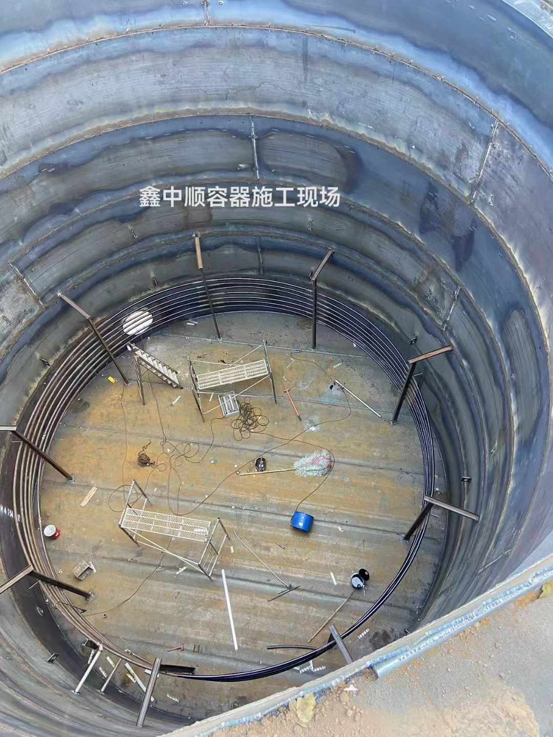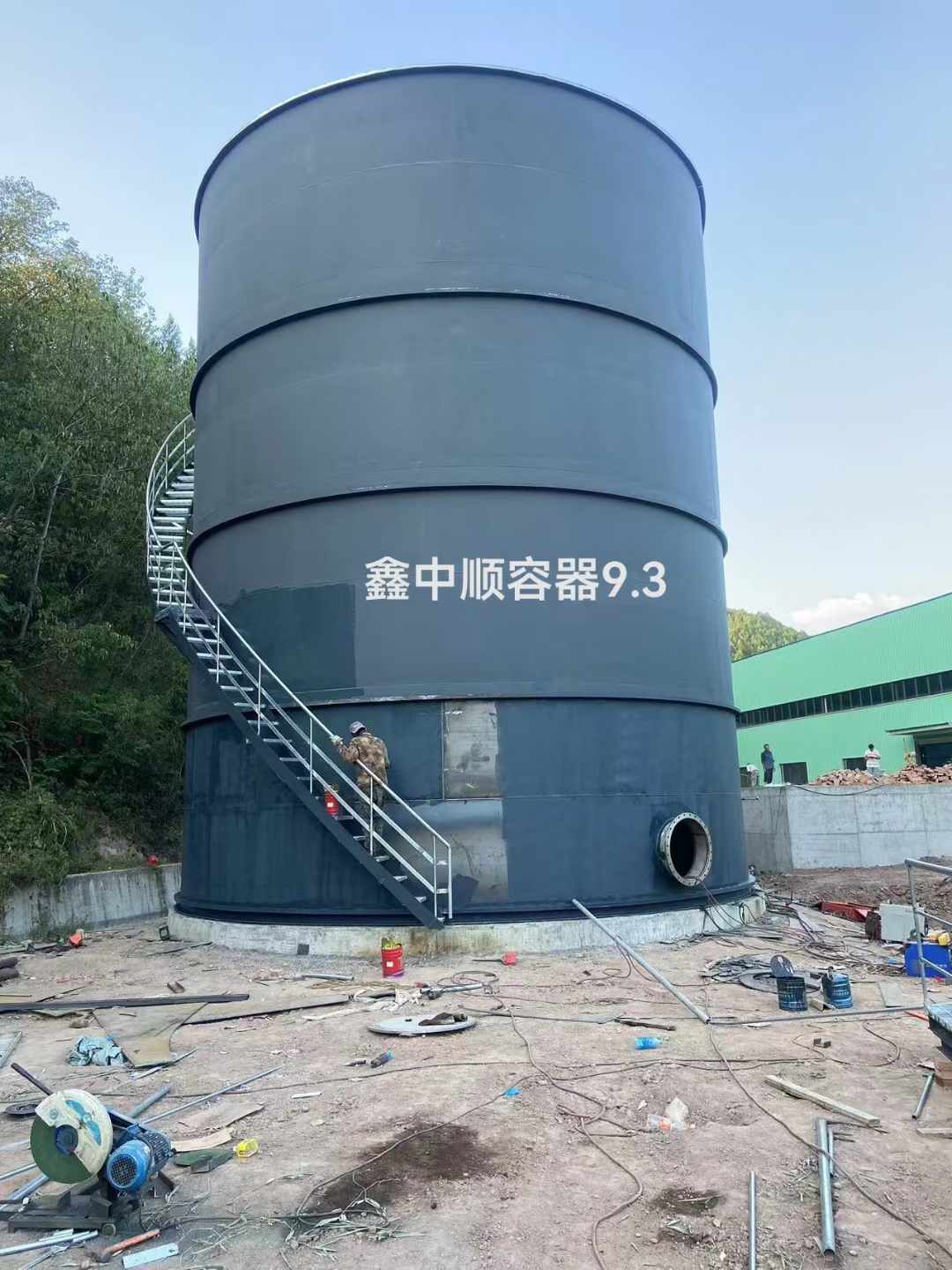 2024年9月3日,四川鑫中順容器施工現(xiàn)場記錄,綿陽市850立方厭氧罐主體完工,明天進行三相分離器制作工序